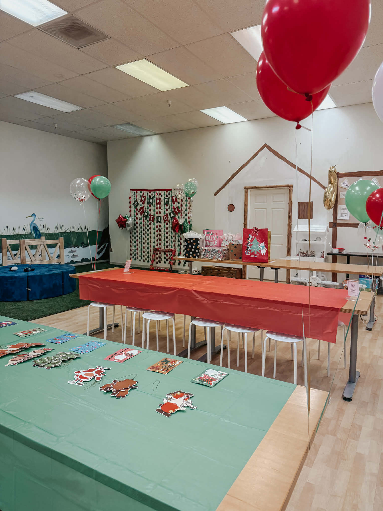 The Gathering Nook is perfect for children’s parties with 10 kids or less. The room includes tables, chairs, a serving counter, photo backdrop and use of the fridge onsite. Guests are permitted to bring in outside food & non-alcoholic beverages. Rental time includes admission for up to 10 kids (wrist band provided).